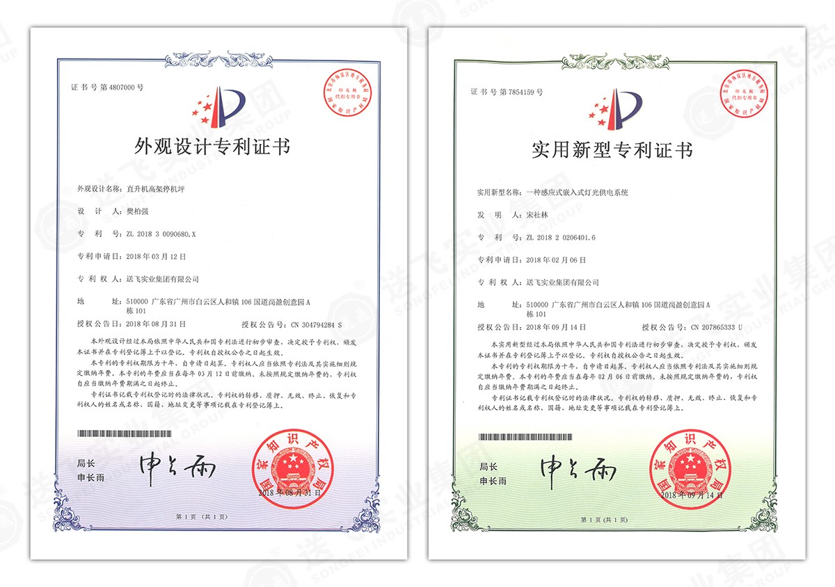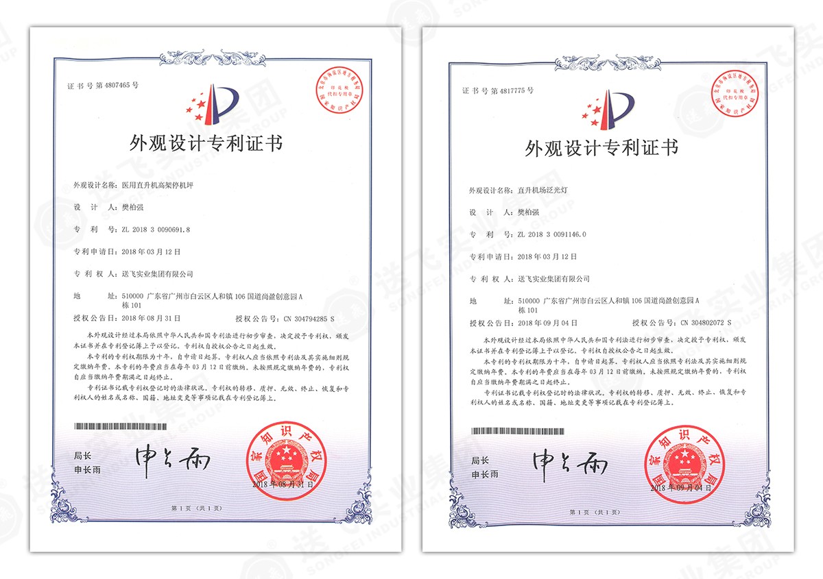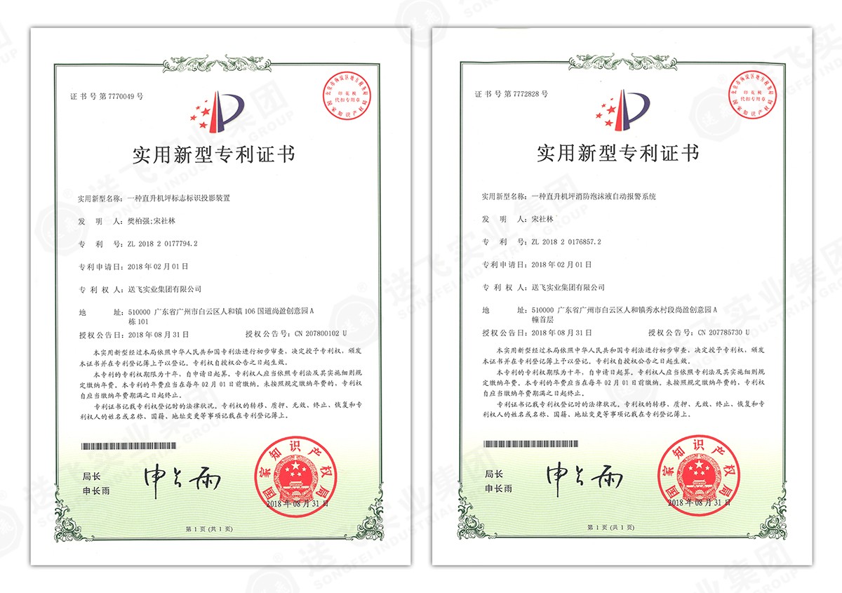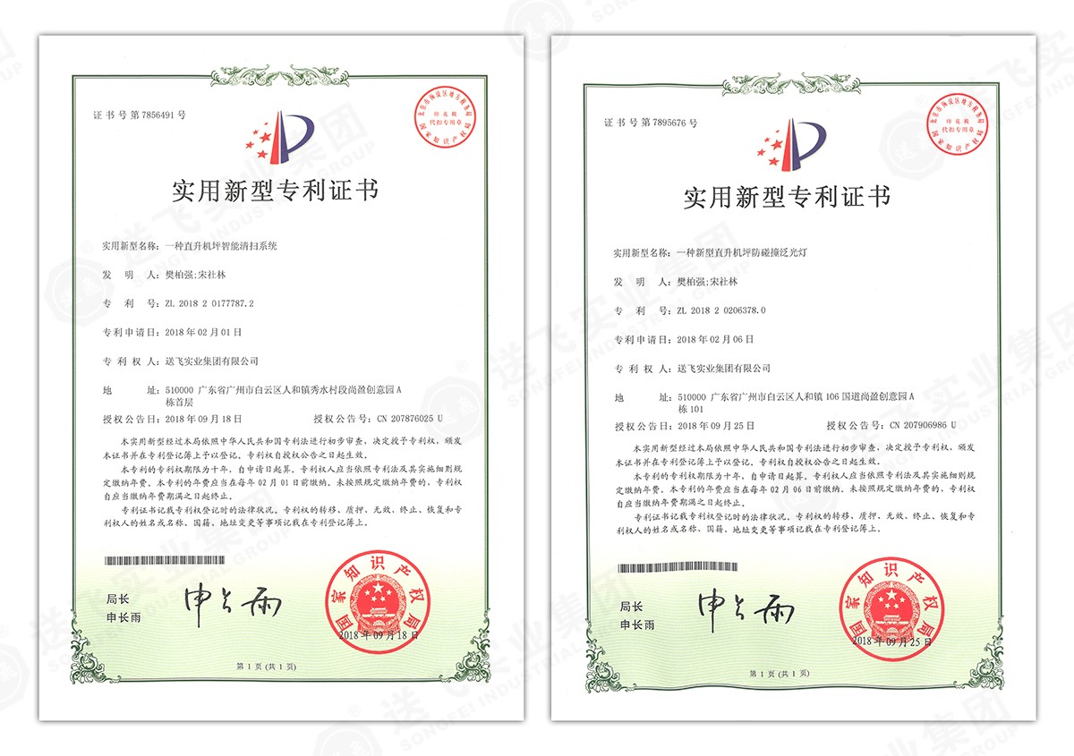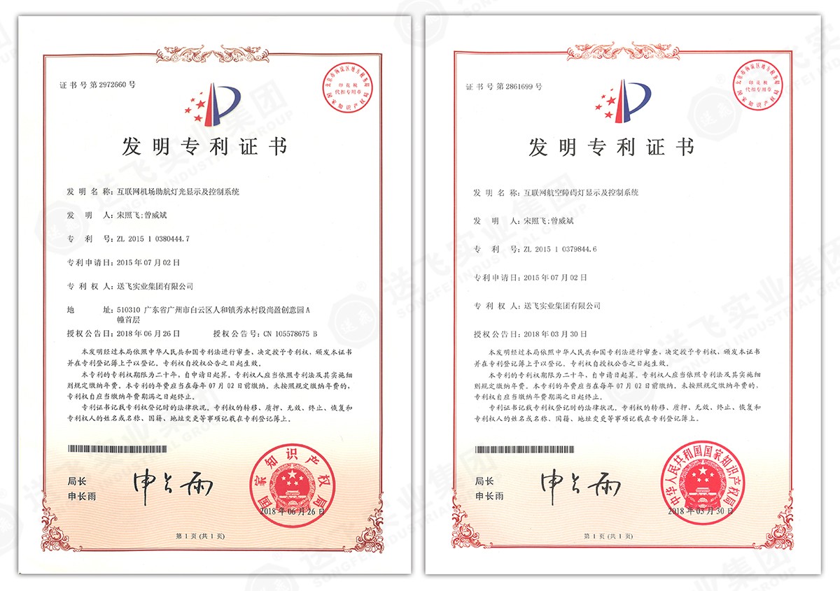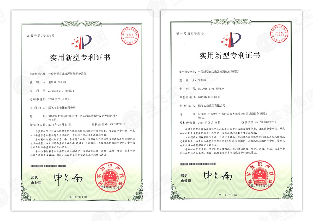 此次新下證專利有22個,其中發(fā)明專利2個,實(shí)用新型專利17個,外觀設(shè)計(jì)專利3個。專利技術(shù)涵蓋航空障礙燈、直升機(jī)坪等多項(xiàng)產(chǎn)品和業(yè)務(wù)。目前,送飛成功申請專利逾百項(xiàng),填補(bǔ)了行業(yè)多項(xiàng)技術(shù)空白。