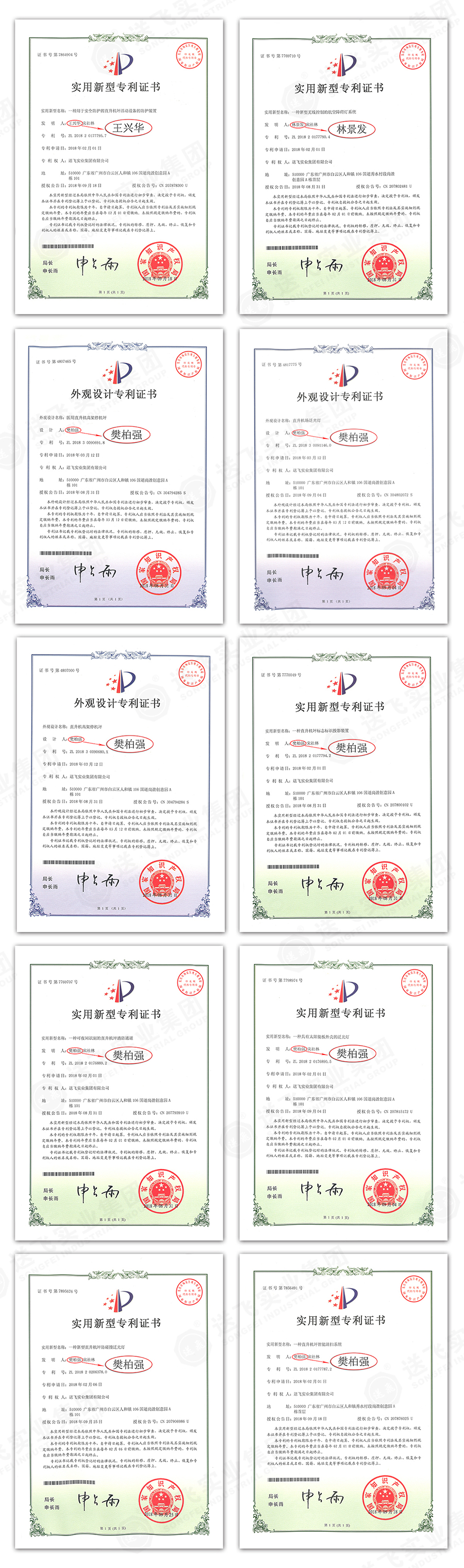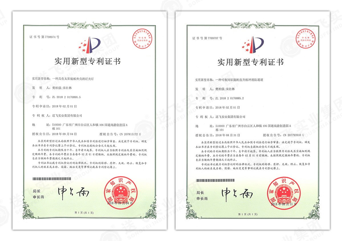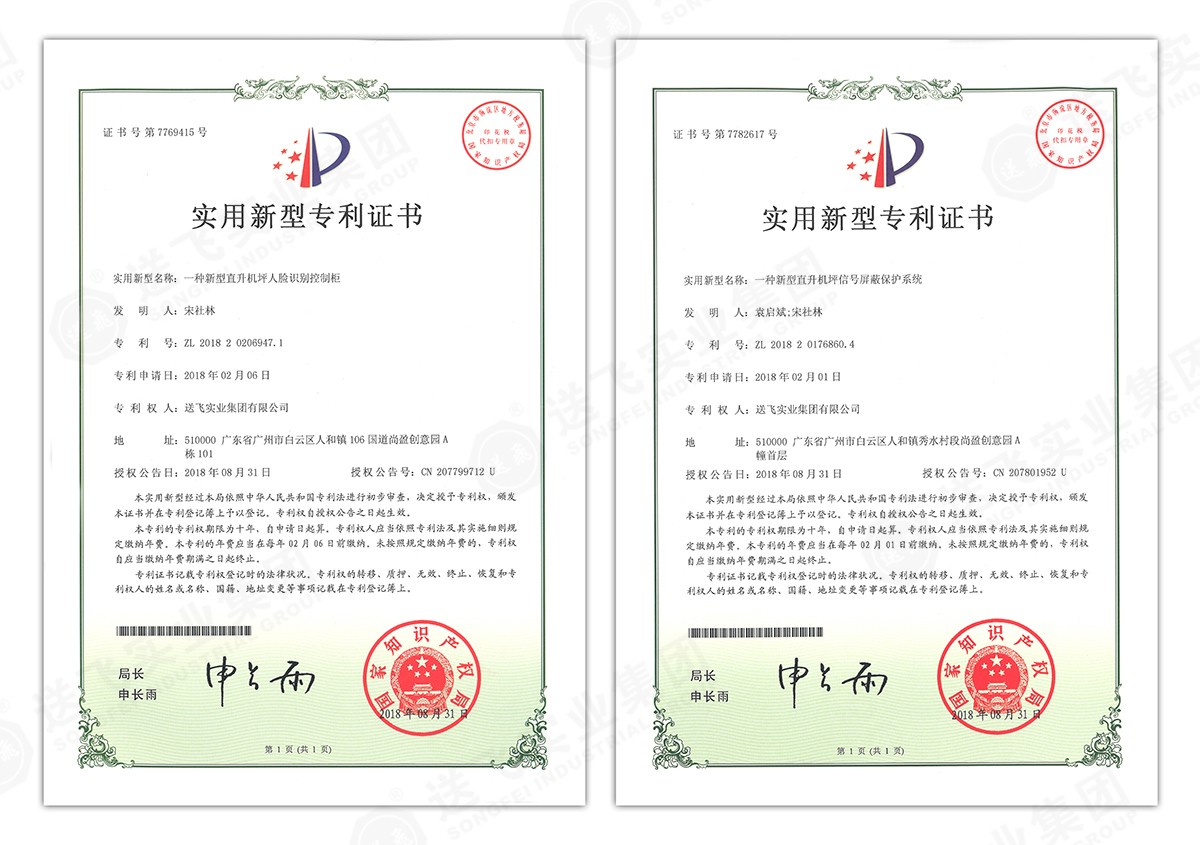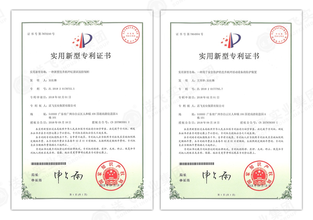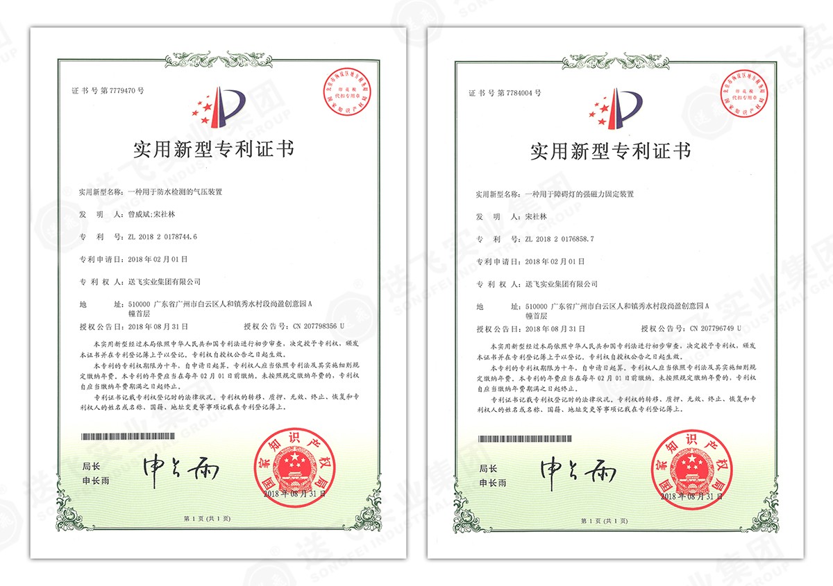 此次新下證專利有22個,其中發(fā)明專利2個,實(shí)用新型專利17個,外觀設(shè)計(jì)專利3個。專利技術(shù)涵蓋航空障礙燈、直升機(jī)坪等多項(xiàng)產(chǎn)品和業(yè)務(wù)。目前,送飛成功申請專利逾百項(xiàng),填補(bǔ)了行業(yè)多項(xiàng)技術(shù)空白。